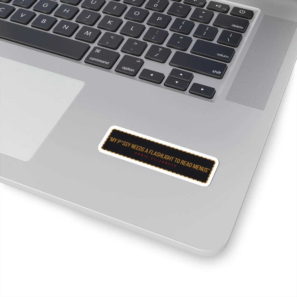 A slim, glossy kiss-cut sticker that speaks with sass and personality. The design features a bold, narrow black banner with warm gold lettering and a stitched-edge detail — a small, cheeky declaration meant to sit on laptops, journals, or water-bottle corners. It applies smoothly, resists scratches, and sticks firmly to flat indoor surfaces, adding a subtle edge to everyday items. Sized for subtle placement, this sticker reads like a private punchline that travels with you: confident, irreverent, and unmistakably expressive.