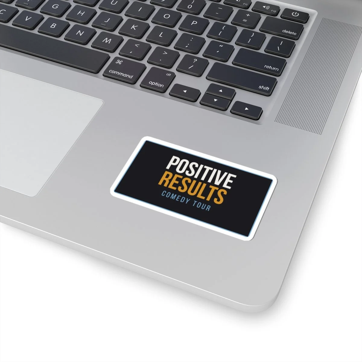 A small, glossy vinyl sticker that channels the energy of a live tour poster. The bold block type—white over deep black with a punch of warm gold—reads like a headline: "POSITIVE RESULTS" with "Comedy Tour 2026" underneath. It’s made to stick cleanly to laptops, journals, water-resistant cases, and any smooth flat surface where you want to flash a bit of tour‑poster attitude. The finish is bright and scratch‑resistant, and the kiss‑cut backing makes application quick and bubble‑free. Choose between white or transparent options and four compact sizes to suit your layout. This sticker adds a crisp, confident accent to everyday gear and carries a low‑key, well‑crafted vibe that fits into a creative commuter’s or performer’s daily kit.
